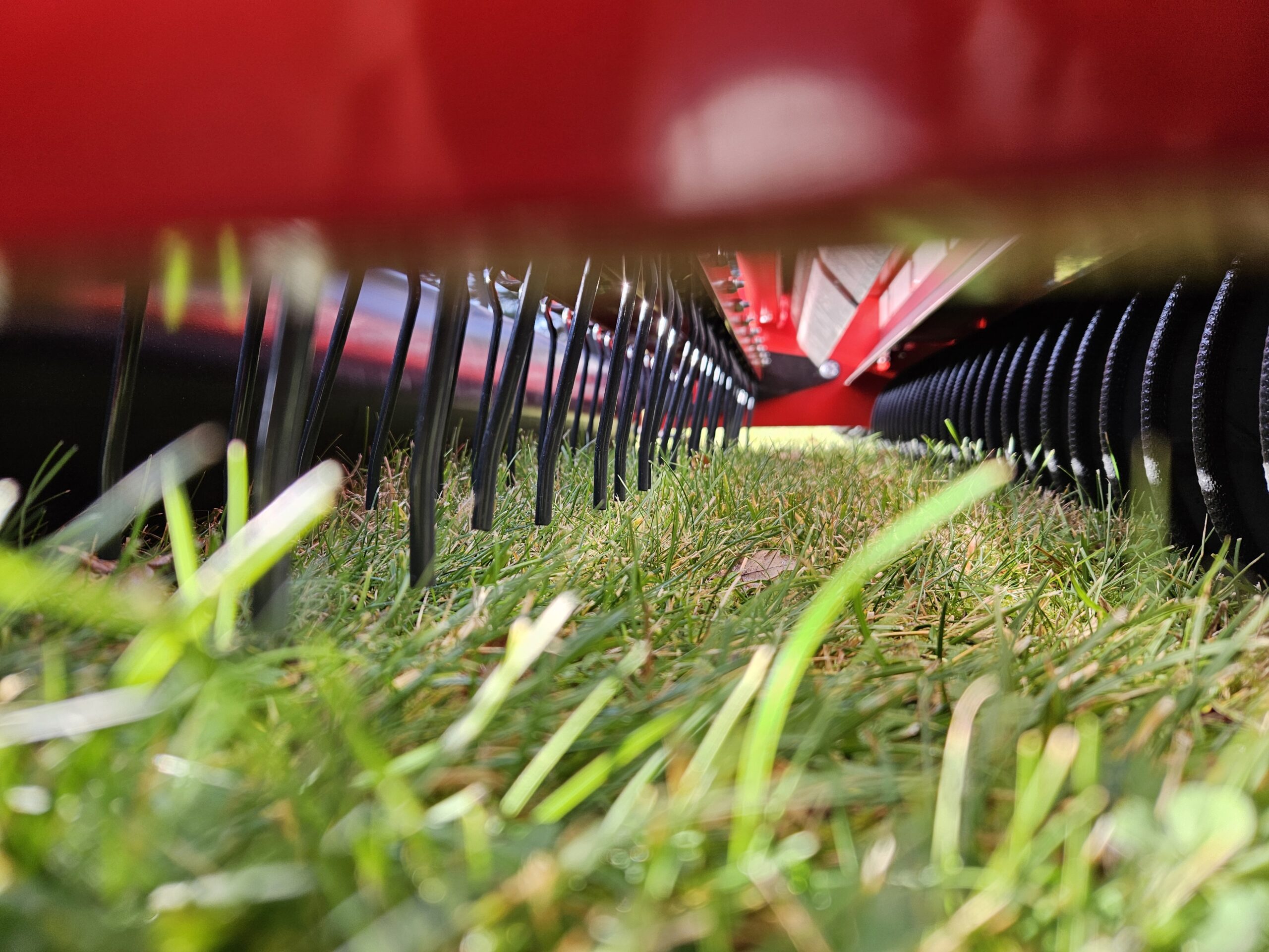 - Scarifying mode: Removes dead organic matter and lifts the grass blades.