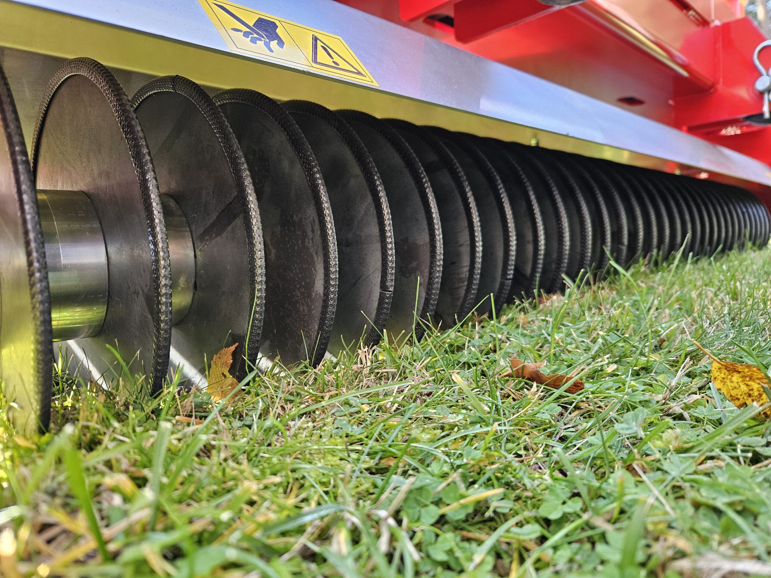 - Weed stress: The 32 sharp, uniformly spaced discs (adjustable from 0 to 60 mm depth, spaced 47.5 mm apart) effectively weaken weeds that are not impacted by superficial scarifying (Spring tine harrow)