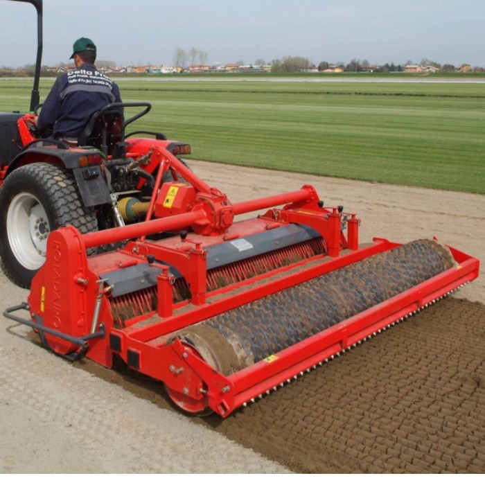 This soil preparer and stone burier is designed for tractors. It allows the building or renovation of green spaces by preparing the seed bed before seeding. The machine is multi-purpose, it allows tilling, burying (stones, rubbish, herbs, etc.), levelling, mixing and rolling the surface. The use is done live or on a ground previously decompacted in depth.