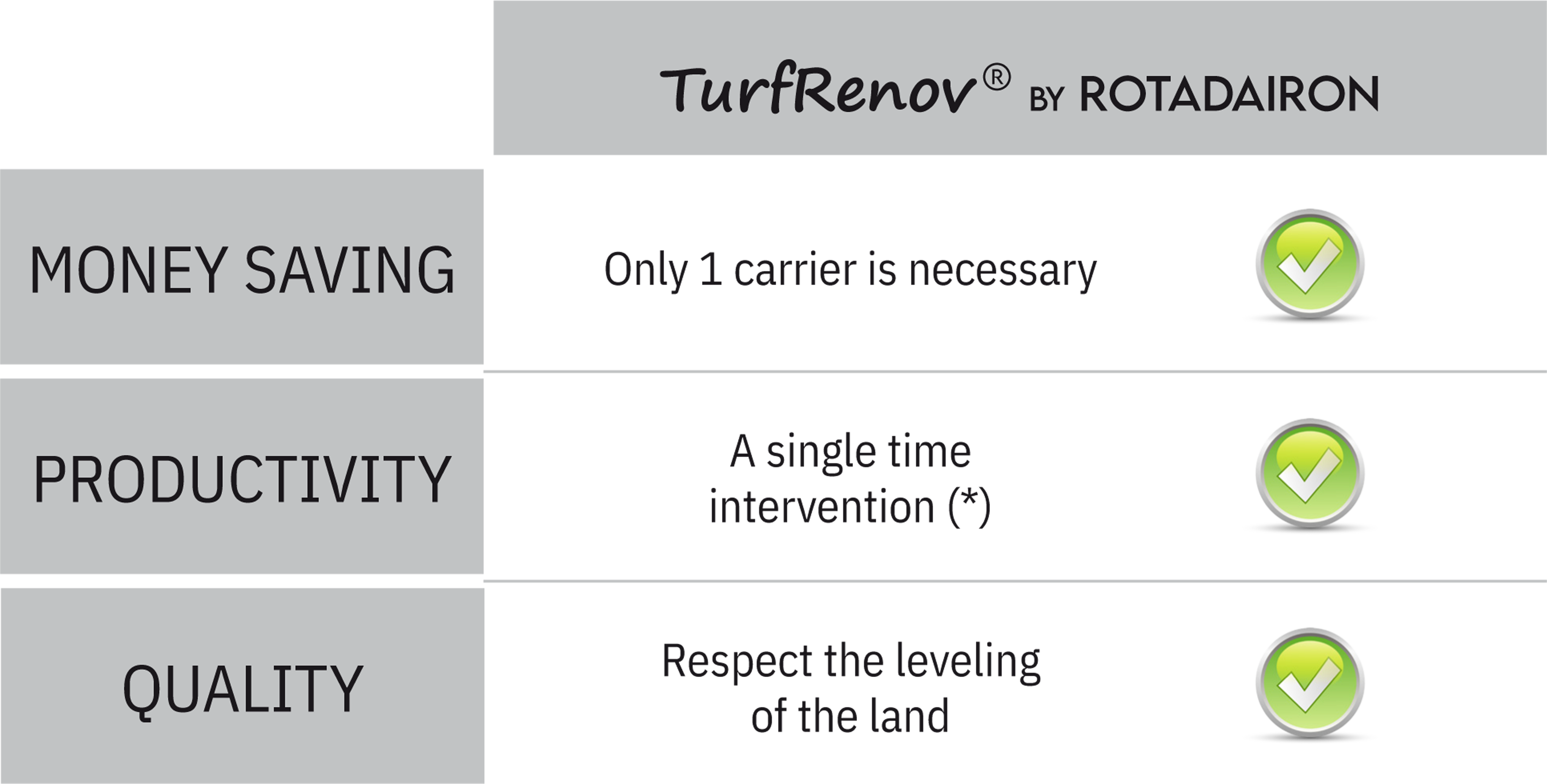 TurfRenov® is a stripping kit that can be adapted to your ROTADAIRON® soil preparer (*).